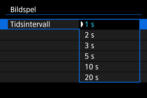- Ställ in inställningarna [Tidsintervall] och [Repetera] (upprepad bildvisning) för stillbilderna.