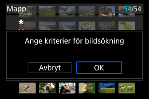 Du kan filtrera bildvisningen efter dina sökkriterier. Om du angett bildsökningskriterier kan du bara visa de hittade bilderna. Du kan också skydda, gradera, spela upp ett bildspel och tillämpa andra funktioner på filtrerade bilder.