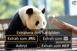 Du kan extrahera valfri bild från uppsättningarna (”rullar” ) som har tagits i läget RAW-serietagning som en JPEG-, HEIF- eller RAW-bild.
