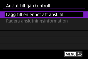 Kameran kan anslutas till den trådlösa fjärrkontrollen BR-E1 (säljs separat, ) via Bluetooth för fotografering med fjärrkontroll.