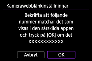 - Bekräfta att kameramodellens namn är registrerat i den dedikerade appen.