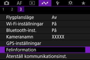 Du kan visa information om fel som påverkar kamerans funktioner för trådlös kommunikation.