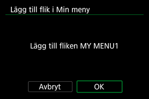 Du kan radera nuvarande flik på Min meny. Välj [Radera flik] för att radera [MY MENU*]-fliken.