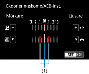 - Du kan ställa in AEB i kombination med exponeringskompensation.