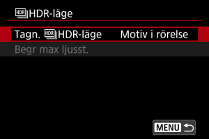 : Visa simulering] satt till ett annat alternativ än [Av] när HDR är satt till [Motiv i rörelse] eller [Dyn. omfång].