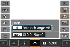 Med egen VB kan du manuellt ställa in vitbalansen för inspelningsplatsens ljuskälla. Du måste göra den här inställningen med samma ljuskälla som du tänker fotografera med.