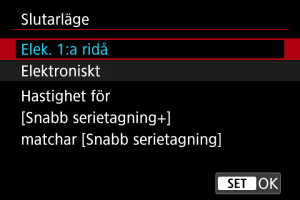 : Tyst slutarfunktion] till [På] ställer in slutarläget till [Elektroniskt].