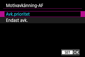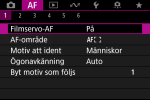 Du kan ange om du vill använda Filmservo-AF om motivet som är inställt i [: Motiv att ident] () inte detekteras.