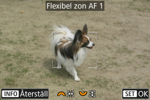 Du kan ändra storleken på Zon-AF-ramen som visas för flexibel Zon-AF 1–3.