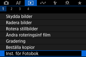 - RAW/HEIF-bilder och filmer kan inte anges för fotoböcker. Observera att RAW/HEIF-bilder och filmer inte anges för fotoböcker, även om du anger alla bilder med [Flera].
