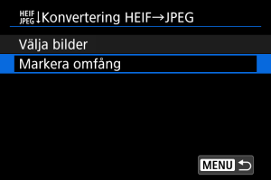 Ange intervallet med bilder som ska konverteras