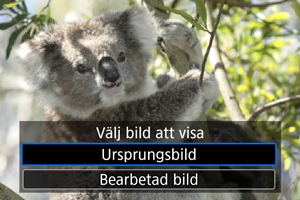 - Välj [Bearbetad bild] för att använda de konverterade JPEG-bilderna för visning.