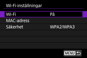 Välj säkerheten som ska användas när du ansluter med kamerans åtkomstpunktläge.