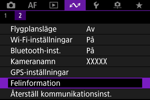 Du kan visa information om fel som påverkar kamerans funktioner för trådlös kommunikation.