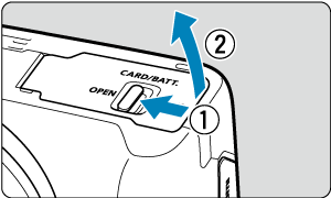 - Sätt i kortet med etiketten mot kamerans framsida till det klickar fast.