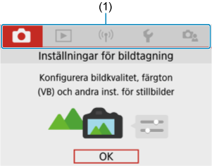 visas huvudflikarna (1) och en beskrivning av den valda fliken.