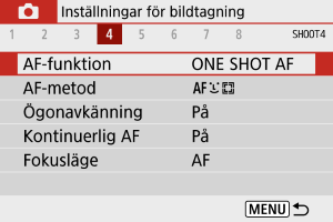 : Tändning med AF-hjälpbelysn] till [Av] för att inaktivera tändning med AF-hjälpbelysning.