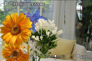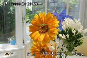 - När motivet är i fokus skiftar fokus-AF-punkten till blått. Ingen pipsignal hörs ens när fokuseringen är klar.