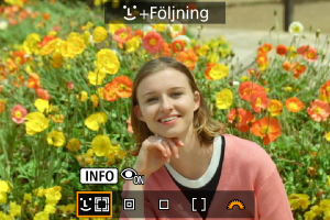 En AF-punkt spårar ansikten eller ögon i fokus om inställningen [Beroende på val av spår] har konfigurerats i Egen programmering under Egna inställningar (C.Fn) ().