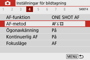 ] visas över spårade ansikten eller ögon. Detta ändrar AF-punkten till [