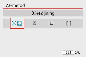 +Följning] in automatiskt. Se Välja AF-metod för information om hur du väljer en AF-metod.