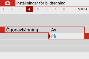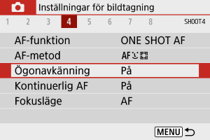 - Du kan växla inställningen för [Ögonavkänning] genom att trycka på knappen