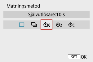 - Du kontrollerar funktionen genom att titta på självutlösarlampan, lyssna efter pipljud eller kontrollera nedräkningen i sekunder på skärmen.
