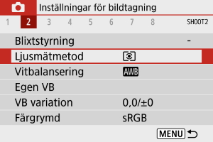 (centrumvägd genomsnittsmätning) ställs exponeringsvärdet in när bilden tas (utan att låsa exponeringsvärdet när avtryckaren trycks ned halvvägs).