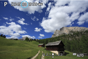 Uppskattat maximalt antal bilder i en bildserie visas överst på inspelningsskärmen.