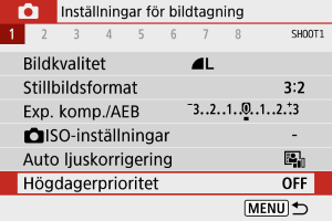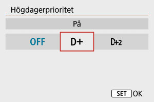- [Förbättrad]: Minskar överexponerade högdagrar mer än [På] under vissa fotograferingsförhållanden.
