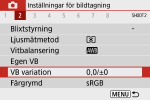 - Vitbalansikonen blinkar när VB-variation ställs in. (Tryck på knappen