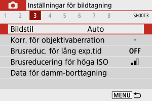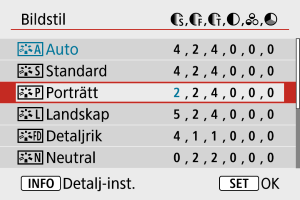 - Om du vill ta bilder med den ändrade bildstilen väljer du först den justerade bildstilen och tar sedan bilden.