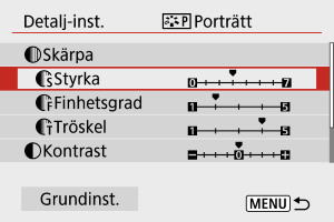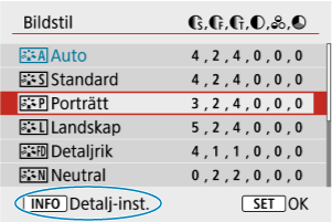 - Genom att välja [Grundinst.] i steg tre kan du återställa parameterinställningar för respektive bildstil till standardinställningarna.