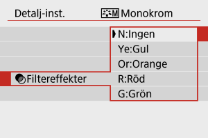 | N:Ingen | Vanlig svartvit bild utan filtereffekter. |