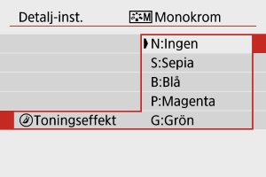 Du kan anpassa en bildstil genom att ändra standardinställningarna. Mer information om att anpassa [Monokrom] finns i [] Monokrom inställning.