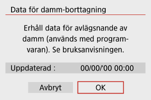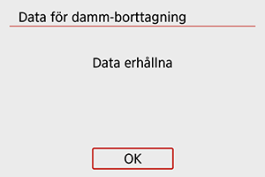 När de har hämtats läggs data för dammborttagning till i stillbilder som har tagits efter den tidpunkten. Hämta data för dammborttagning före bildtagning rekommenderas.