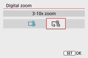 - Välj [Av] i steg 2 för att avbryta den digitala zoomen.