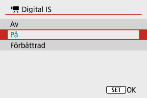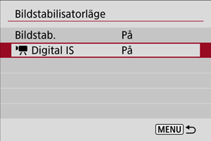 Bildstabilisatorn med Digital IS för film är inaktiverad.
