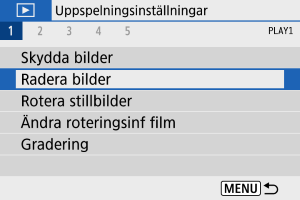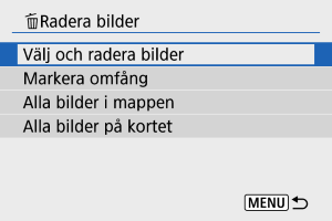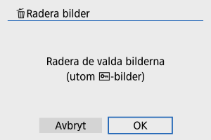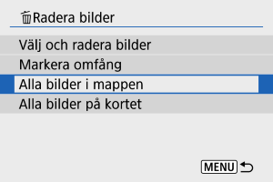 : Radera bilder] kommer alla bilder i mappen eller på kortet att raderas.
