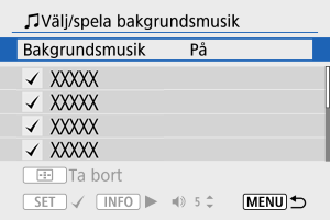 - Använd [Bakgrundsmusik] för att välja musik () om du vill spela upp bakgrundsmusik.
