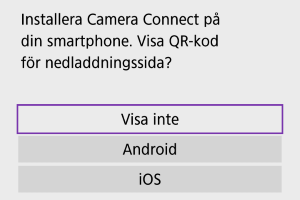 Anslut till smartphone]. Välj [Visa inte] om Camera Connect redan är installerat.