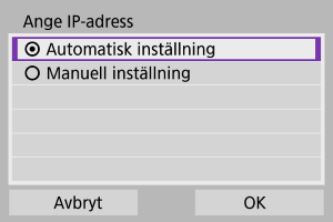 - Se Manuell inställning av IP-adress om ett fel inträffar med [Automatisk inställning].