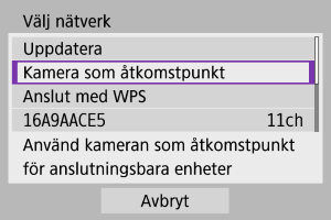 - Se Kamera som åtkomstpunkt för [Kamera som åtkomstpunkt] som visas i steg 5.