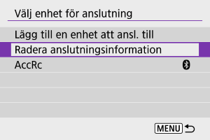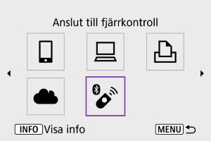 Kameran kan anslutas till den trådlösa fjärrkontrollen BR-E1 (säljs separat, ) via Bluetooth för fotografering med fjärrkontroll.