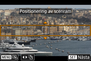 ] kan du också byta mellan vertikal och horisontell motivram. Scenramens orientering kan även ändras från horisontell orientering genom att trycka på knapparna