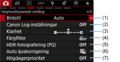 - (2) Canon Log-inställningar