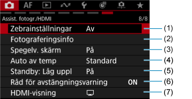 - (1) Zebrainställningar