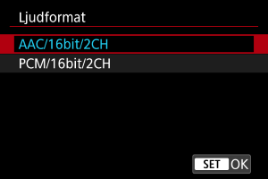 Du kan välja ljudformatet som används för ljud vid filminspelning.