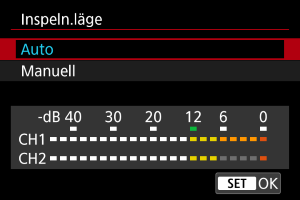 Tillgänglig när [Inspeln.läge] är inställt till [Manuell].