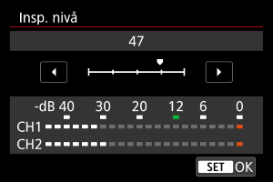Du kan ändra ljudinspelningsnivån vid behov. Justera nivån i [Insp. nivå].